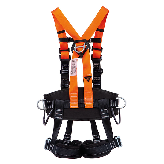 Um ponto peitoral para proteção contra queda por meio de quatro alças para engate simultâneo em fita de poliéster;