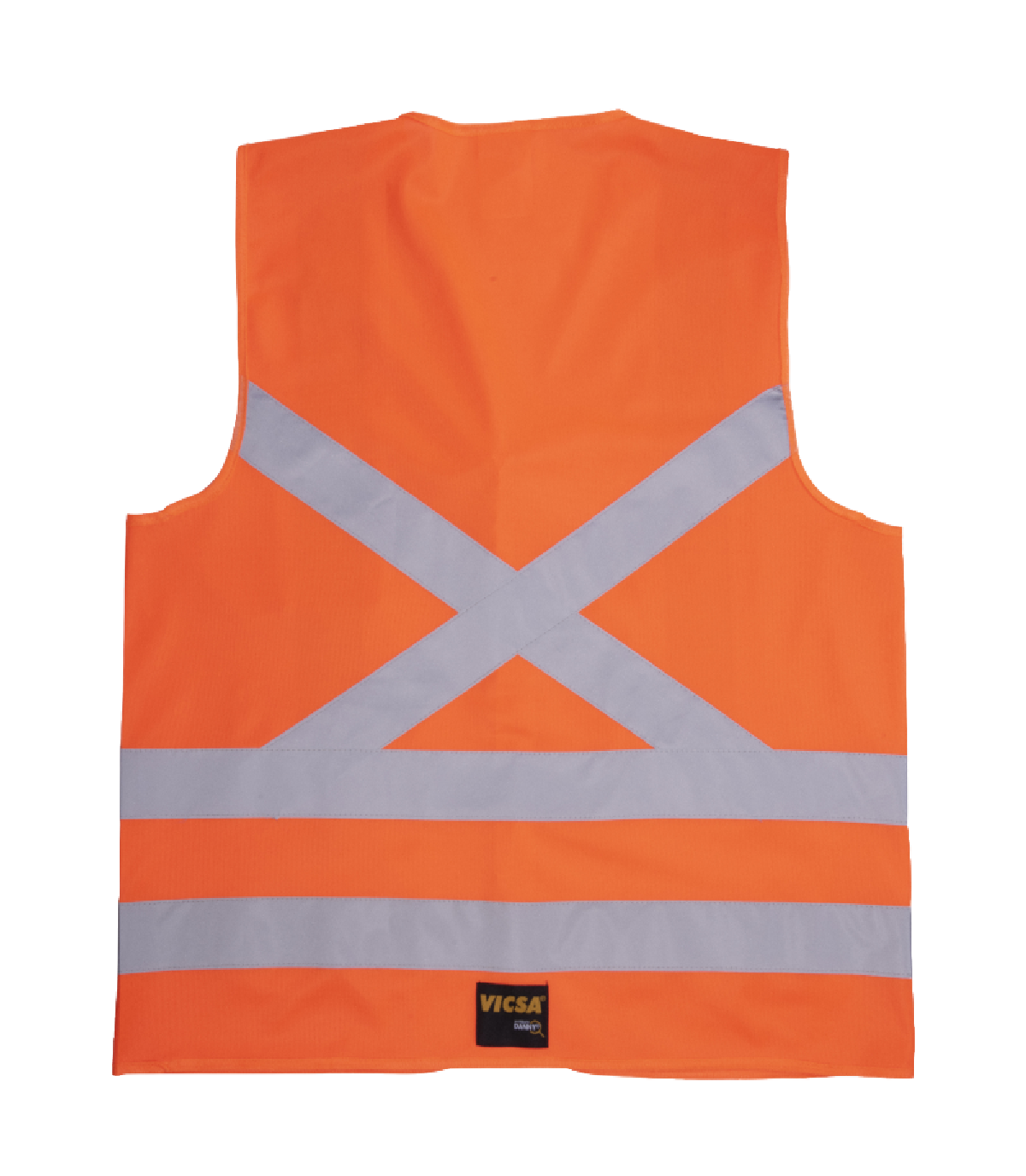 Faixas retrorrefletivas repelentes de água em X, com paralelas horizontais nas costas, verticais e horizontais na parte frontal;