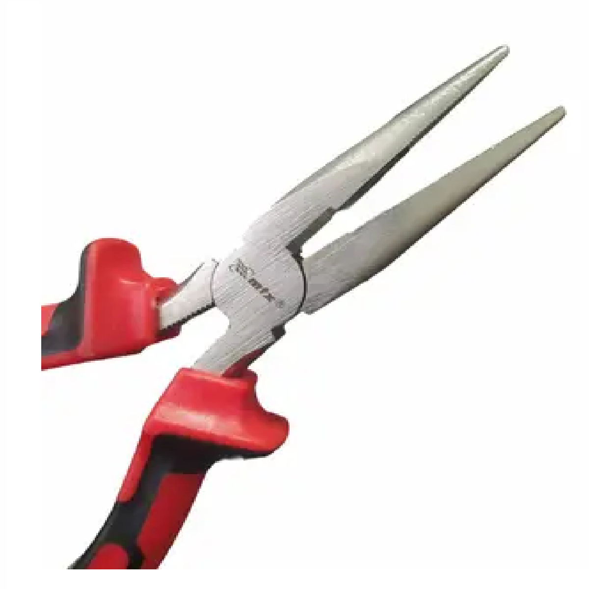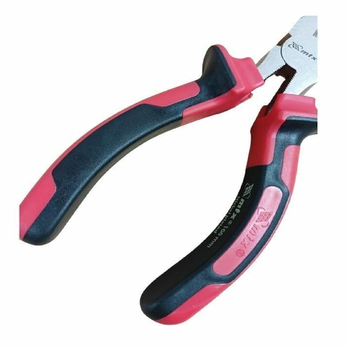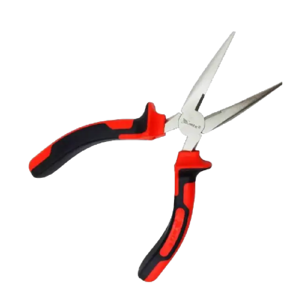Alicate bico meia-cana reto da linha Níckel possui acabamento polido e cabo plástico anatômico com dois componentes.